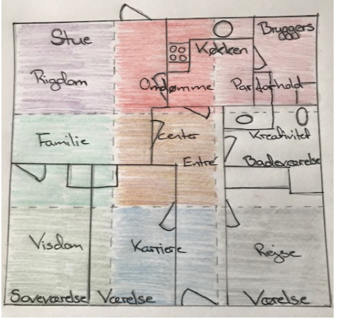 I nedenstående tilfælde ligger hele Hjælpsomme mennesker & Rejser helt uden for boligen, men også det meste af Livsvej & Karriere. En smule af Center og Børn & Kreativitet ligger også udenfor boligen.